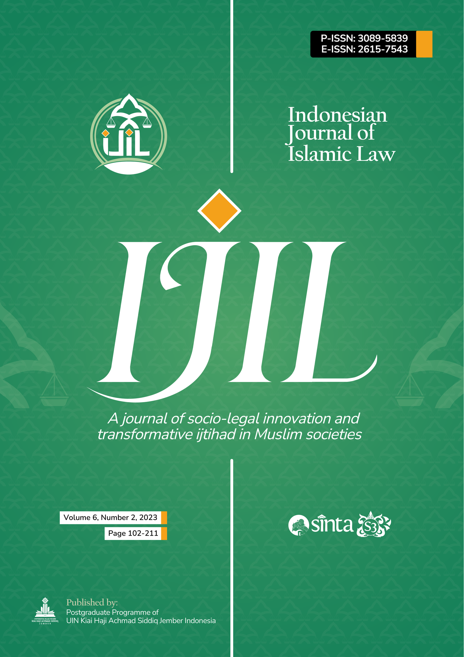 The Indonesian Journal of Islamic Law publishes scholarly articles on Islamic law. This edition has been available online since June 30, 2023. All articles in this edition were written or co-authored by 13 authors representing 13 affiliates and 3 countries: Australia, South Africa, and Indonesia.